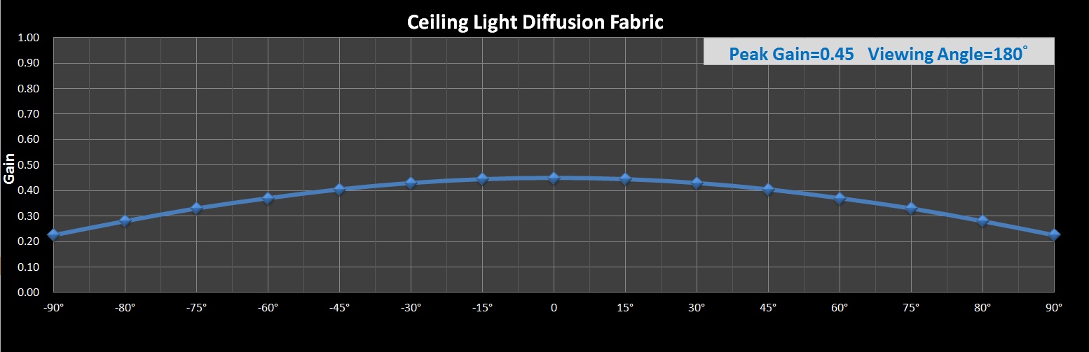 APLUS’s Ceiling Light Diffusion fabric is a newly developed louvered style front projection media which effectively reject directional ambient light from the top such as decoration spot light, as well as providing enriched color and high contrast images.